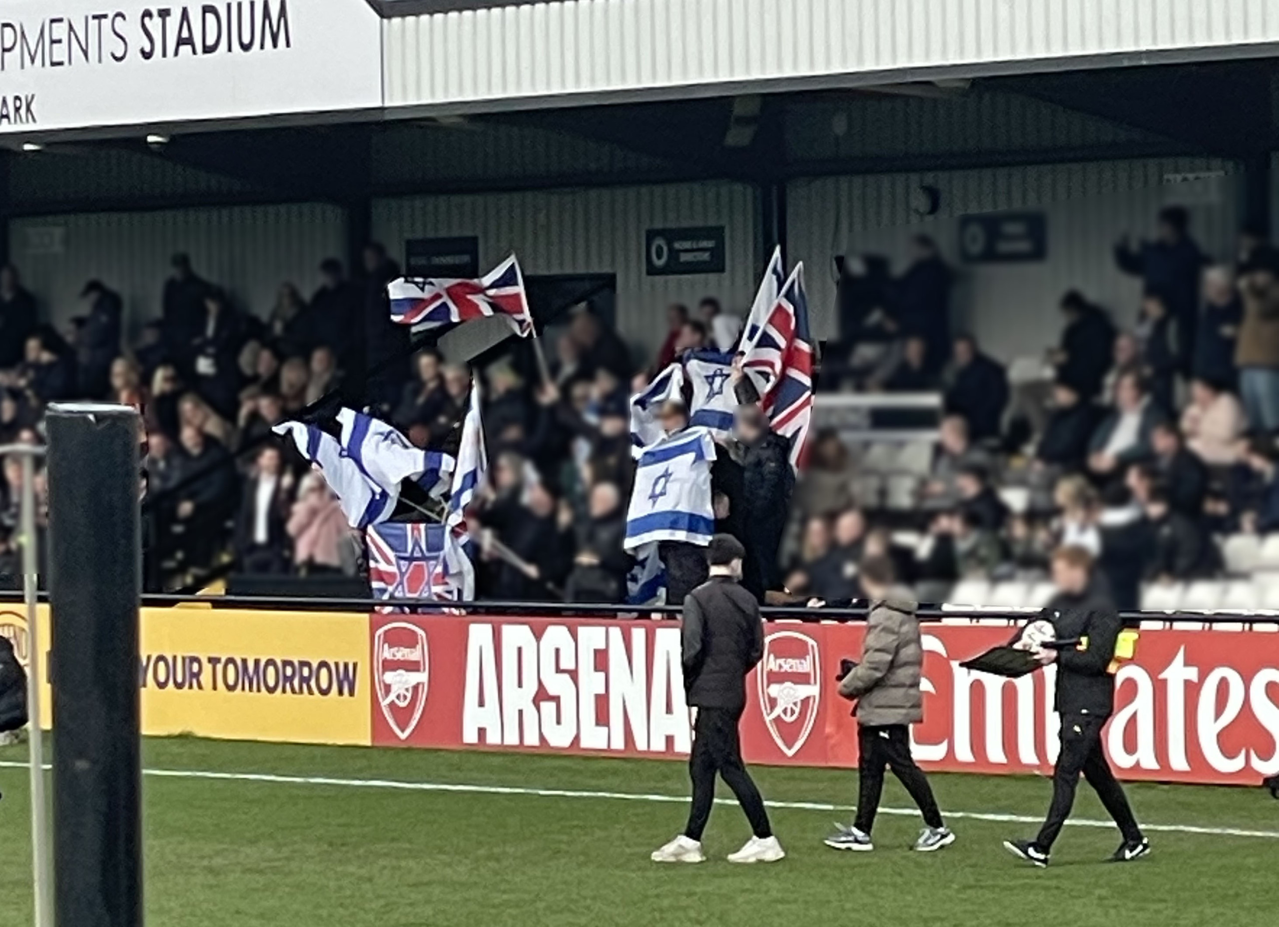 One visiting fan, who asked not to be named, said: “We arrived about 45 minutes before kick-off and we had a group of children with us. I was horrified at what appeared to be a political demonstration from fans in the club’s east stand. A sizeable group were waving the Israeli flag and the Union Jack with the Star of David on it, shouting and chanting at us about our club’s owner.”