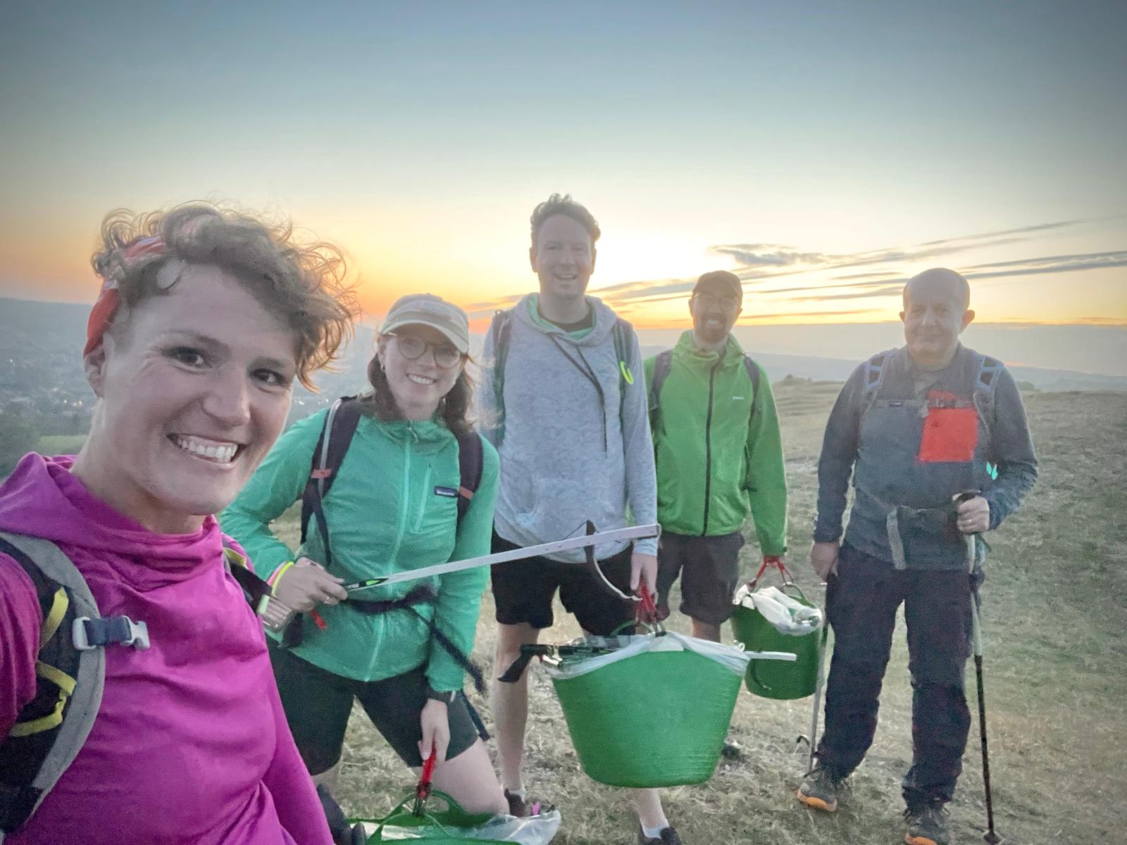 Gill’s solstice walk team started at sunset at Painswick Beacon and finished at Wotton-under-Edge. The route should have been 22 miles but her team ended up walking 26 miles (the distance of a marathon) because of frequent diversions to pick up rubbish.